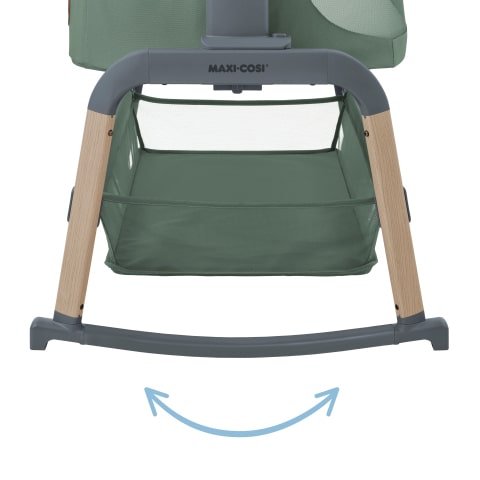 Maxi-Cosi Iora Air bénéficie d'une fonction balancelle pratique pour apaiser facilement votre bébé. Retournez simplement les pieds incurvés pour bercer votre bébé afin qu'il s'endorme.
