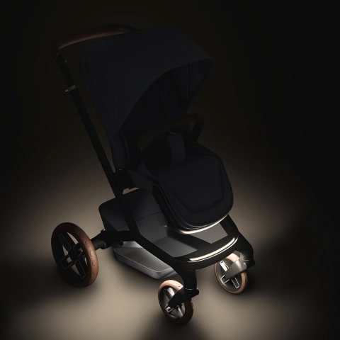 Le châssis emblématique de la poussette dispose d’un système de lumières LED intégré conçu pour éclairer les rues sombres et les chemins peu éclairés, vous permettant ainsi de rester visible et en toute sécurité, vous et votre bébé, à tout moment.