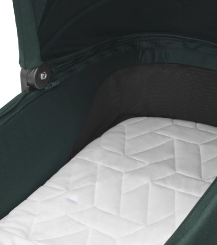 Le matelas réversible en mousse à mémoire de forme de Sense et les fenêtres ClimaFlow assurent le confort de votre enfant tout au long de l'année, tout en se fixant facilement sur la poussette Oxford.