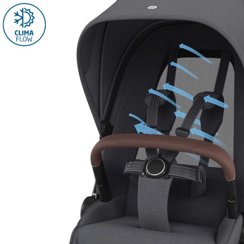 Le châssis emblématique de la poussette dispose d'un système de lumières LED intégré conçu pour éclairer les rues sombres et les chemins peu éclairés, vous permettant ainsi de rester visible et en toute sécurité, vous et votre bébé, à tout moment.