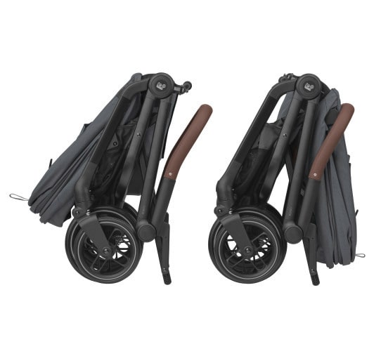 La poussette ultra-compacte Leona² se plie pour atteindre une taille adaptée à la ville, ce qui permet de la transporter facilement en ville et de la faire entrer dans les coffres de taxis et les appartements.