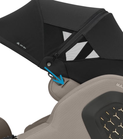 Le canopy se fixe facilement et rapidement à l’appuie-tête de votre siège auto.