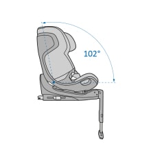 - Een 360° rotatiesysteem waarmee je in elke ligstand in de gordel modus, tot 4 jaar (105 cm), de stoel gemakkelijk met één hand kunt draaien.