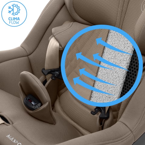 - Je kleintje zal het hele jaar door comfortabel blijven dankzij de ClimaFlow ventilatiepanelen, het ademende foam en de mesh stoffen van de autostoel die de luchtcirculatie bevorderen.