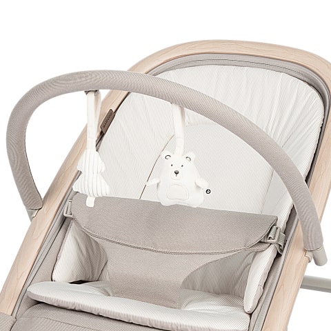 Om de ontwikkeling van je baby te helpen stimuleren, heeft de Kori een speelgoedboog met Barry de beer en zijn bosboom. Ontworpen met verschillende texturen om je kind te stimuleren en te vermaken.
