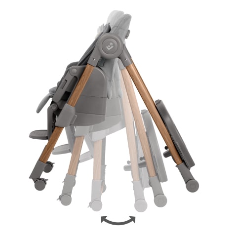 Dankzij een met één hand draaibaar tafeltje en easy-in-harnashaken, is het nog nooit zo gemakkelijk geweest om je kind in en uit de kinderstoel te krijgen.