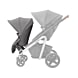 De set wordt compleet geleverd met de tweede stoel (geschikt vanaf 6 maanden), pedaal, regenhoes en een set hulpstukken (om te gebruiken voor de eerste stoel in de oudergerichte positie of om een autostoel of reiswieg te bevestigen).